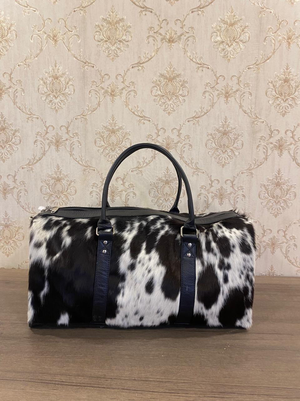 Black & White Cowhide Large Duffel Bag