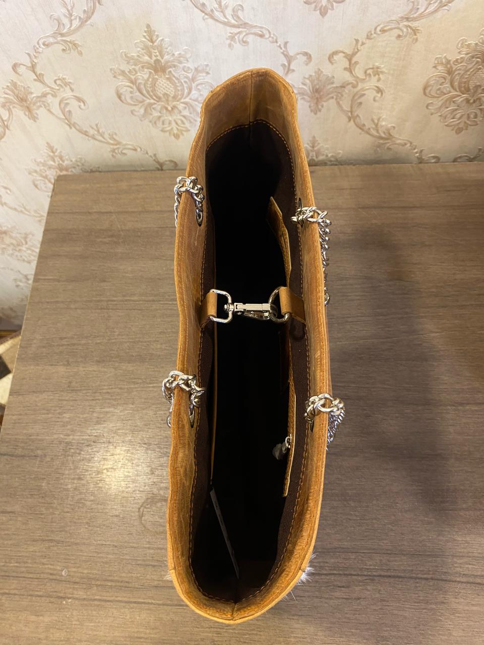 Features: Spacious interior, reinforced stitching, durable leather handles, natural pull-up finish