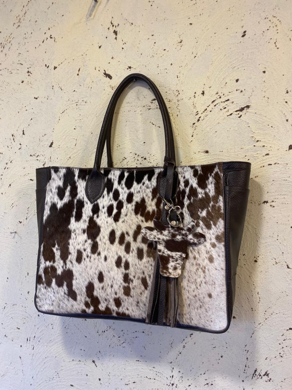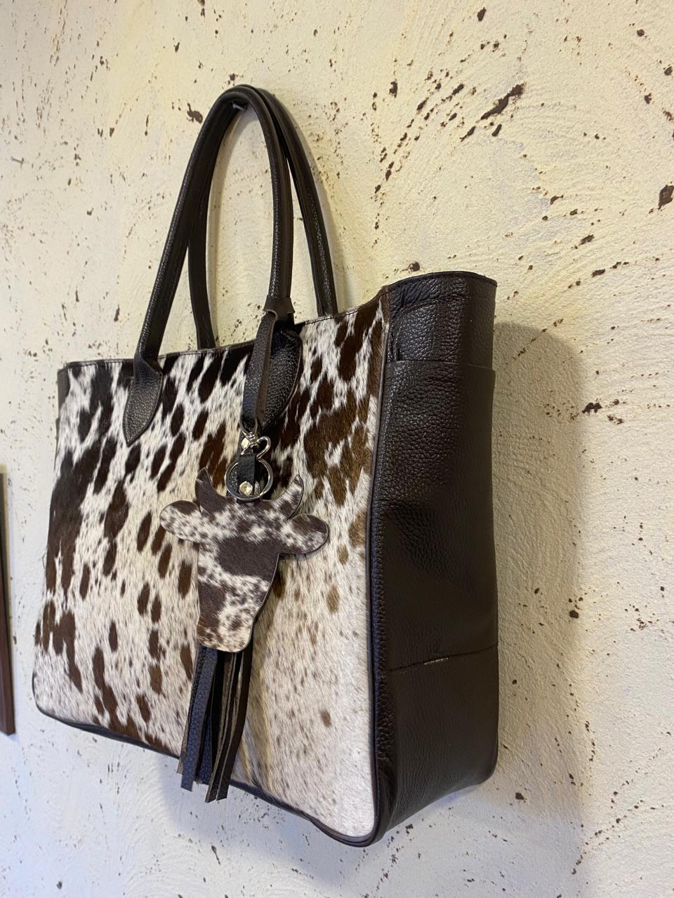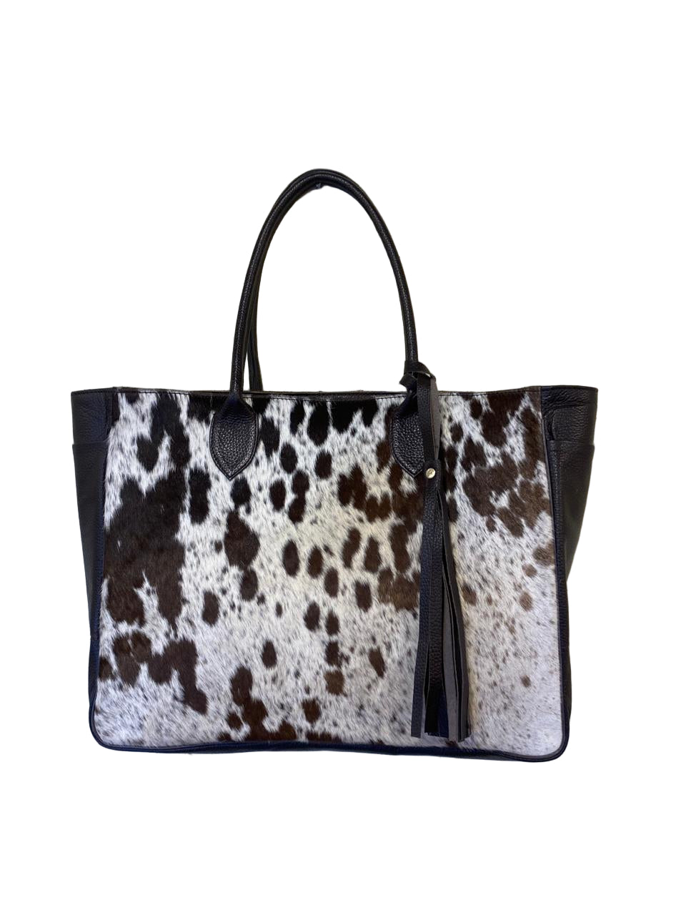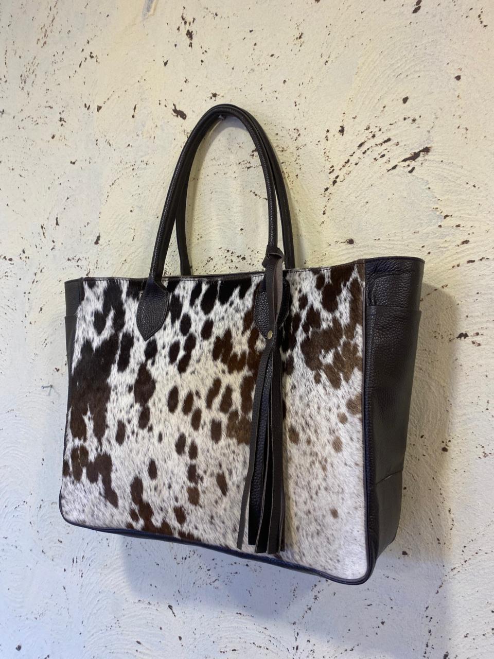 Bring natural charm to your style with Brunelle, a handcrafted tote made from premium hair-on cowhide with smooth leather handles. Each bag features a unique brown & white speckle pattern, making every piece one-of-a-kind. Lightweight, durable, and spacious, Brunelle is perfect for daily use, office, shopping, or travel.