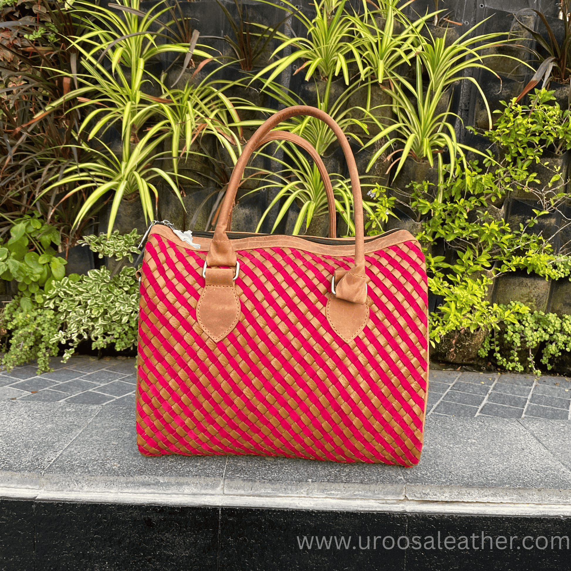 A graceful fusion of color and craftsmanship — this Handwoven Pink & Beige Handbag by Uroosa Leather embodies refined elegance. Each bag is meticulously woven from genuine sheep leather, combining soft pastel hues with artisanal precision. Its supple texture, durable finish, and elegant form make it the perfect companion for women who appreciate beauty in every detail. Whether paired with a chic outfit or casual wear, this piece effortlessly adds sophistication to your style.